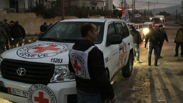 والآن، فإن منظمتي، اللجنة الدولية للصليب الأحمر آي سي آر سي، بالإضافة للهلال الأحمر السوري والأمم المتحدة تم السماح لهم بإدخال الاحتياجات الإنسانية الضرورية إلى البلدة.